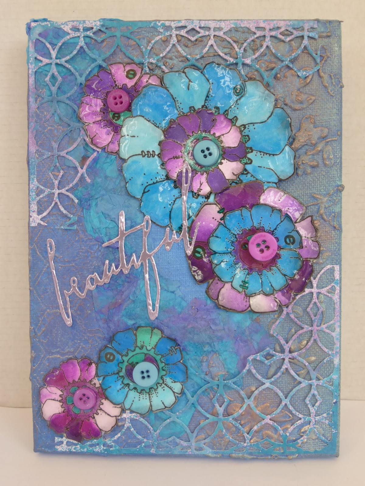 Gorgeous canvas Angela, fabulous background, love those flowers an colors.