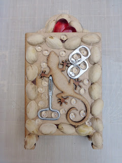 Hahah! Who would have guessed that pistacchios form such a fab texture! Your shrine is just gobsmackingly brilliant and I love the worn look and the elements you have put together to make this cool shrine, Angela! Absolutely fantastic!