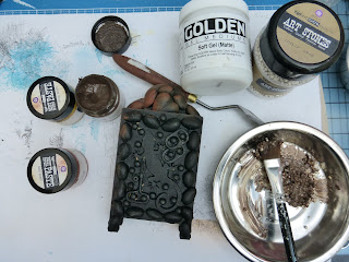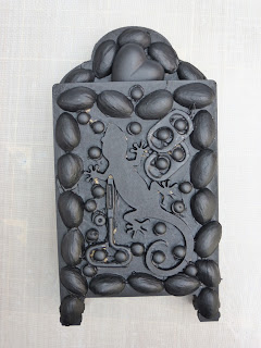 Usually I cover them with a coat of white Gesso and then put them together but this time it's not necessary as I will be adding elements to it and then covering with Black Gesso later.