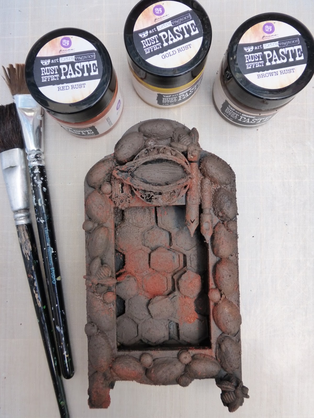 This paint dries really quickly which is useful as you will want to add the three different colours as you go along to give the rusty effect but also blend them without intermixing the colours too much which could happen if they were too wet.