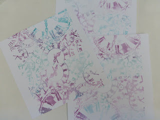 For the toppers I used some paper which had originally been used to mop over some stamping and it looked like this: 'waste not , want not' as the saying goes.