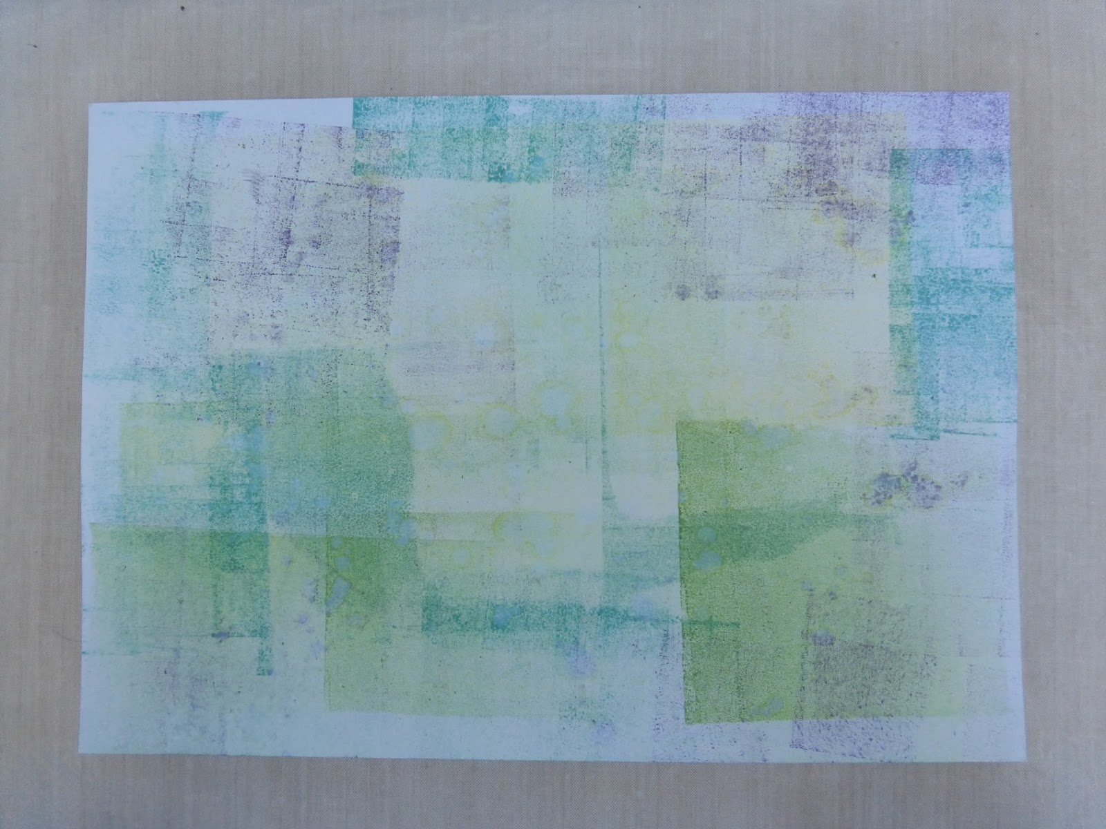 I had this A4 piece of card which I had cleaned one of my brayers on (hate to waste good paint Lol!) and used this for the background.