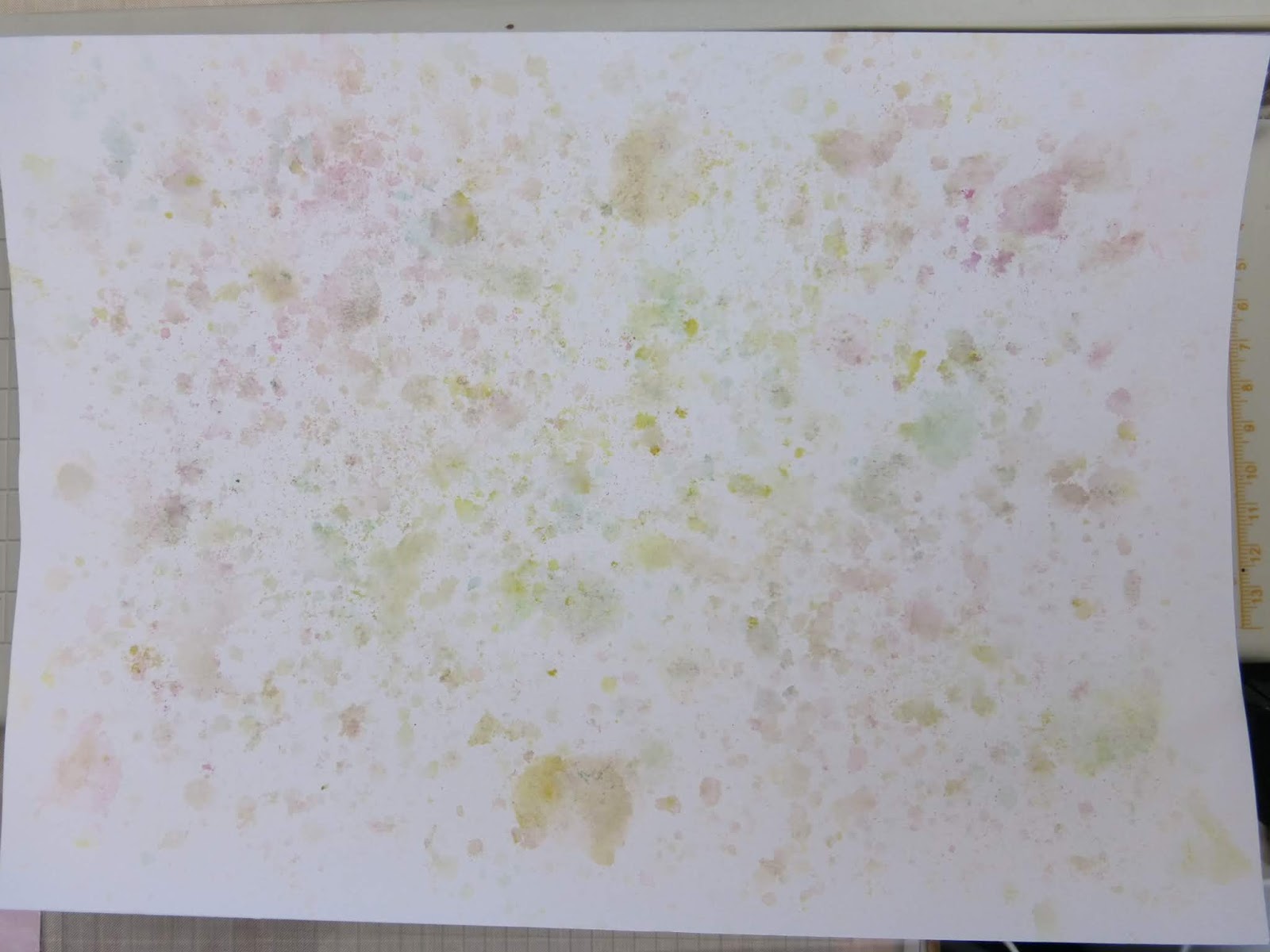I always have some A4 sheets of paper that I use as mop up cloths when I'm applying ink or paint to my Masterboards and decided to use this one to stamp on.