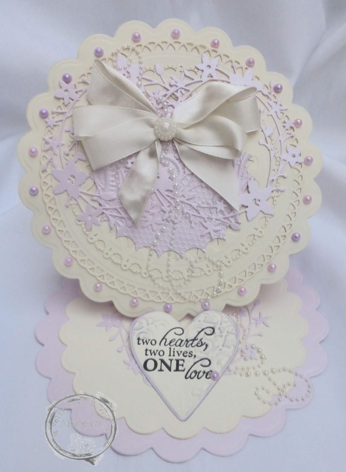 This card is so beautiful Angela! I love the unusual shape and the way you mixed and layered the diecuts! So elegant and so pretty!! Have a fabulous day! xx
