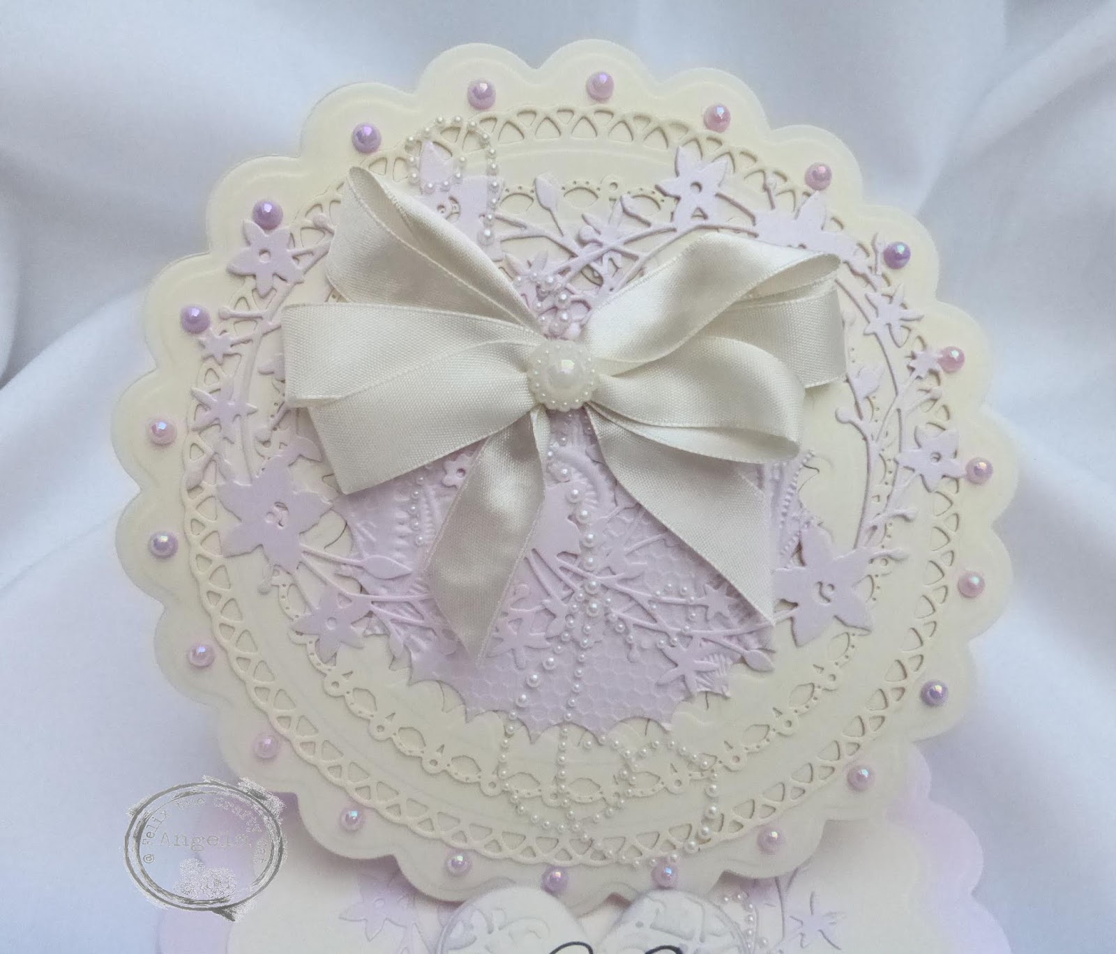 This was an unusual card for me as I don't normally get to make anything so pretty but I bet you can guess what it's for so I get to use my favourite prettiest dies and ribbon.