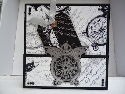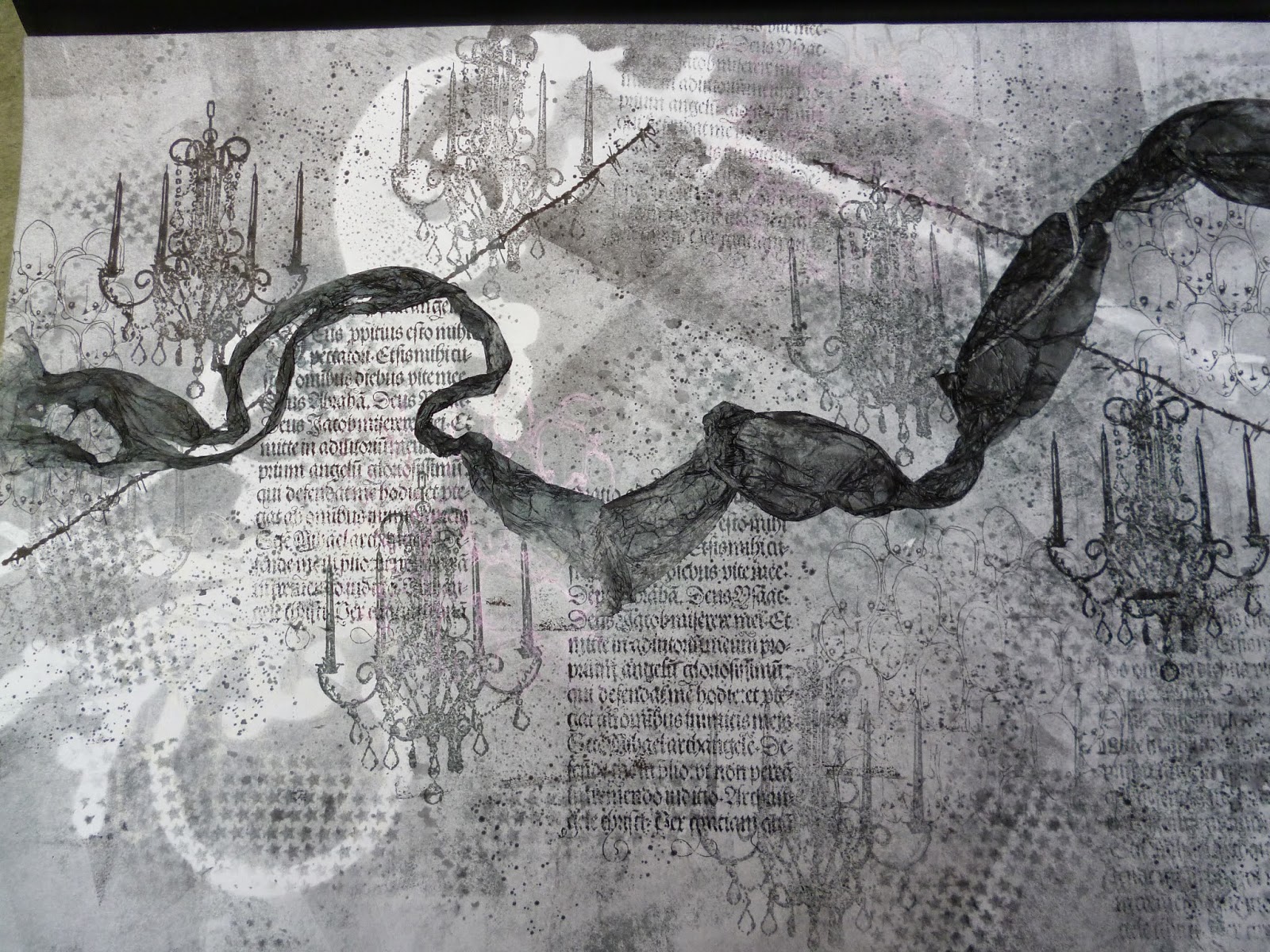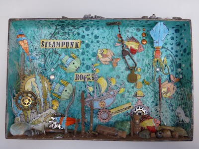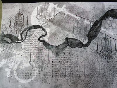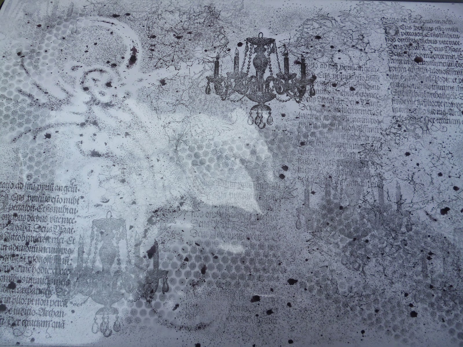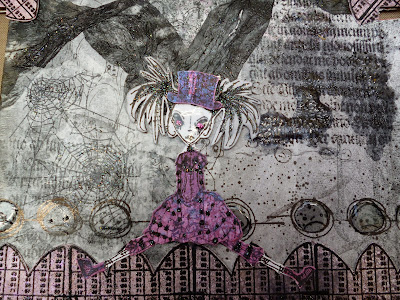 Grunge paste, distress inks and Seth Apter stamps and stencils.