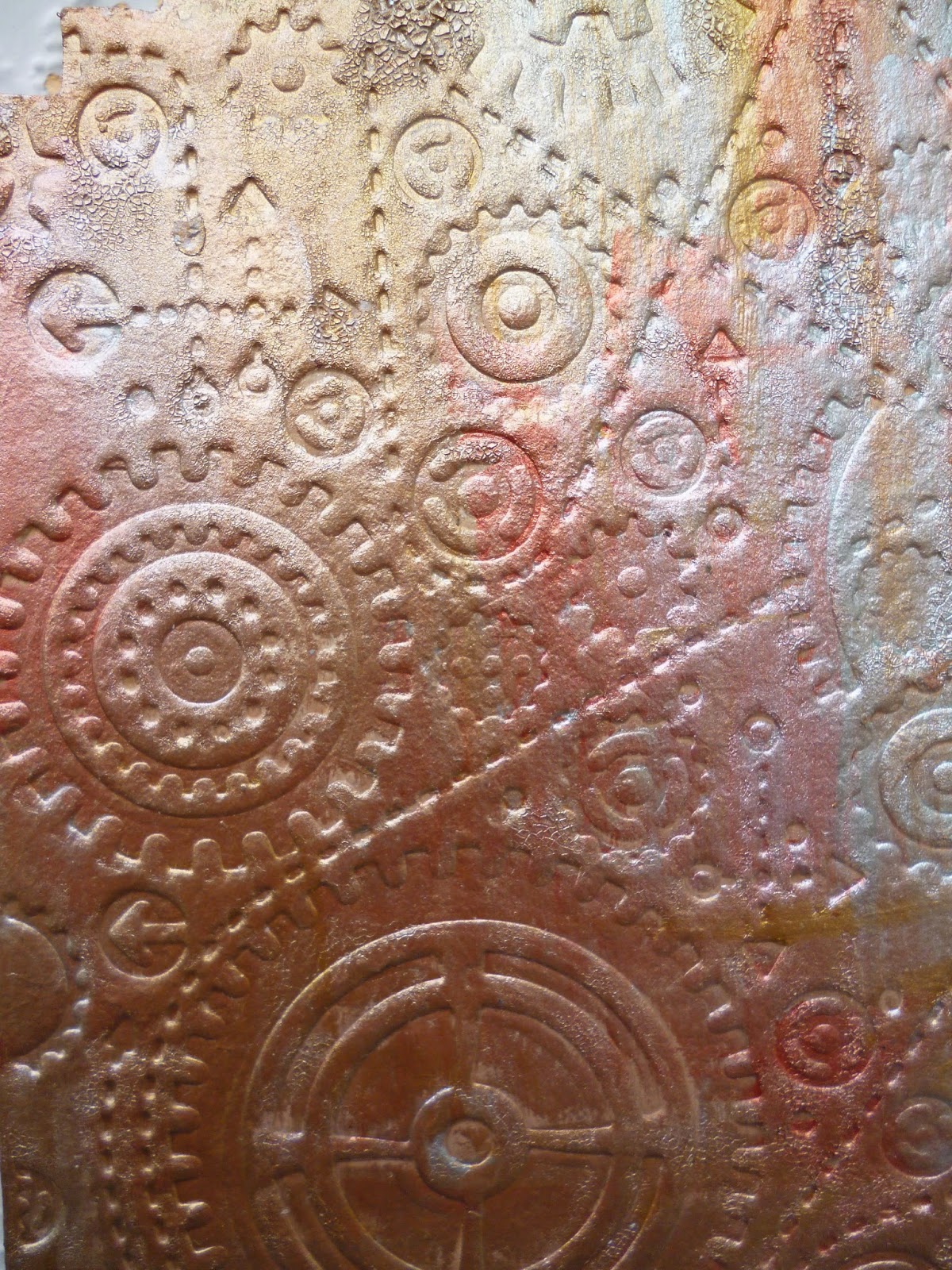 Next I added embossing powder building up the thickness and then stamping into the final layer.